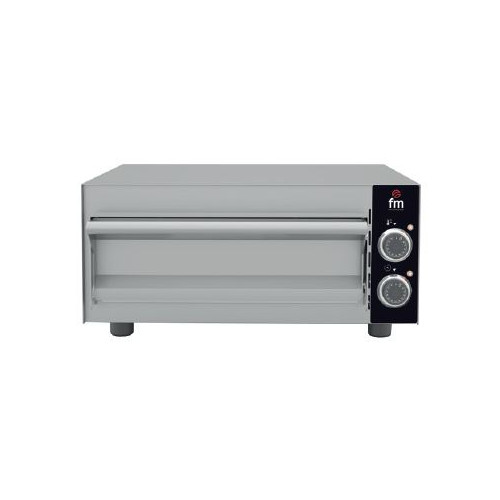 Mini-four - 1 chambre - Capacité : 1x350 mm - Dimensions intérieure : 405x360x80 mm - Extérieur en inox et intérieur galvanisé (pour une meilleure résistance à la chaleur) - Sole en pierre réfractaire de haute qualité - Température de 50 à 320° - Minuterie de 60 min et mode continu - Système d'évacuation de la vapeur avec 2 sorties indépendantes - Isolation thermique haute densité - Résistance frontales blindées en inox compensatrices de chaleur - Alarme de fin de cycle - Puissance : 2 x 1000 w