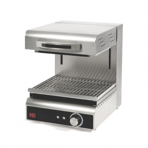 Salamandre électrique à plafond mobile - Corps en acier inoxydable AISI 304 - Plafond réglable en hauteur, ouverture sur 3 côtés - Résistance en acier inoxydable basculante - Grille de support amovible avec un plateau fourni de système anti-basculement GN 2/3 - Contrôle de la température via un régulateur d’énergie - Témoins lumineux métalliques LED indiquant le fonctionnement