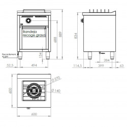 Corps en acier inoxydable AISI 304. - Pieds réglables en hauteur - Portes en option sur les modèles avec étagères - Brûleur pilote et thermocouple de sécurité -