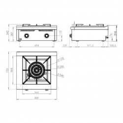 Fourneau Gaz 1 bruleur central - Corps en acier inoxydable AISI 304 - Brûleur pilote et thermocouple de sécurité - Grille supérieure en fonte - Portes en option sur les modèles avec étagères - Pieds réglables en hauteur