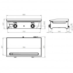 Plancha à gaz - Puissance : 9600 w - Plaque en acier rectifié d'épaisseur 6 mm - Carrosserie en inox avec bac de récupération en façade – Thermocouple de sécurité - Pieds réglables - Chaque bruleur a un interrupteur automatique - 2 zones de chauffe indépendantes et réglable de 30-300° - Voyants LED métalliques de fonctionnement.