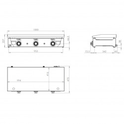 Plancha à gaz - Puissance : 12000 w - Plaque en acier rectifié de 15 mm. d’épaisseur - Carrosserie en inox avec bac de récupération en façade – Thermocouple de sécurité - Pieds réglables - Chaque bruleur a un interrupteur automatique - 2 zones de chauffe indépendantes et réglable de 30-300° - Voyants LED métalliques de fonctionnement.