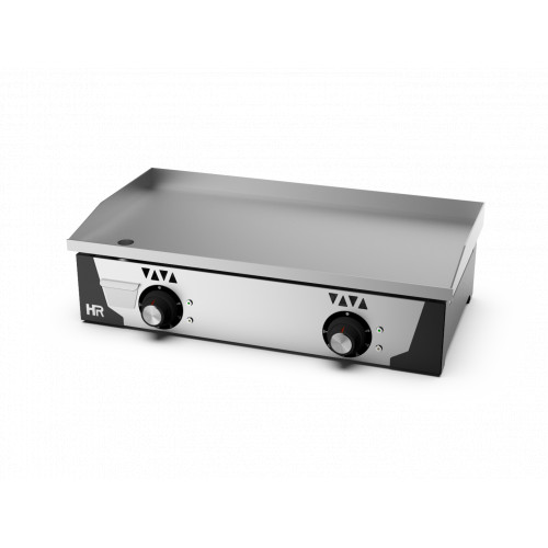 Plancha à gaz - Puissance : 5000 w - Plaque en acier rectifié de 15 mm. d’épaisseur - Carrosserie en inox avec bac de récupération en façade – Thermocouple de sécurité - Pieds réglables - Chaque bruleur a un interrupteur automatique - 2 zones de chauffe indépendantes et réglable de 30-300° - Voyants LED métalliques de fonctionnement.