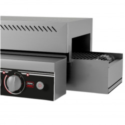 Toasteur à convoyeur - Inox - Capacité : 650 toasts / heure - Hauteur de passage : 220 mm - Possibilité de toaster haut/bas ou deux faces - Réglage de vitesse - Plateau inférieur amovible avec évacuation horizontale - Interrupteur marche/arrêt - Réglage de puissance de chaque niveau (10 positions) - Possibilité de choisir le sens de défilement du tapis - Puissance : 3000 w