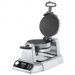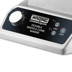 Gaufrier professionnel à cornet de glace en modèle double de 1400W permettant de préparer jusqu’à 120 cornets par heure, système tournant pour une cuisson uniforme, bip sonore de fin de cuisson, voyants de mise sous tension et de préchauffage et plaque remplaçable à triple revêtement antiadhésif pour faciliter l’entretien - Cône pour former un cornet de glace inclus