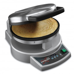 Table de cuisson multifonction XPRESS - Diamètre : 34 cm - Surface de cuisson en aluminium avec élément chauffant intégré pour un temps de chauffe et de récupération rapide - Les deux surfaces de cuisson permettent de cuire les deux côtés en même temps, ce qui évite de devoir retourner les aliments - Les surfaces de cuisson sont recouvertes d’un triple revêtement en Whitford QuanTanium®* pour faciliter le retrait des aliments - Pavé tactile électronique avec contrôle précis de la température de 50 ̊C à 235 ̊C - Affichage de la température en degrés Fahrenheit ou Celsius - Minuterie numérique à compte à rebours programmable avec indicateurs sonores - Spatule en silicone incluse pour plier les crêpes et retirer les aliments sans rayer la surface antiadhésive