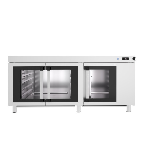 Etuve - Capacité : 10x 600x400 / 5x 600x800 + 600x400 - Extérieur et intérieur inox - Température maximum 85°C - Porte en verre trempé - Supports pour plateaux amovibles pour faciliter le nettoyage - Possibilité de choisir chaleur sèche ou humide - Distance entre les niveaux : 80mm - Plaques non fournie - Puissance : 2100 w