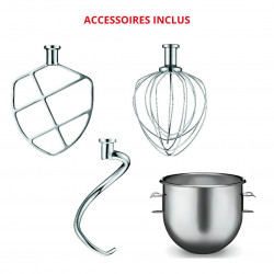 Batteur Luna 20 - Grand bol en acier inoxydable de 19 L avec poignée en acier inoxydable -Transmission à engrenages et lubrification permanente qui assure un fonctionnement silencieux - Commandes en façade et voyant LED d’alimentation - 3 vitesses de mélange avec cadran de contrôle de la vitesse variable - Protection anti-éclaboussures amovible et transparente avec goulotte d'alimentation -Tête inclinable vers l'arrière pour faciliter le montage et démontage des accessoires ainsi que le nettoyage - Levier de levage/déverrouillage de la tête pour usage intensif - Protection thermique contre les surcharges - Comprend un bol en acier inoxydable, un fouet de chef, une spirale de pétrissage et une palette de mélange. Accessoires lavables au lave-vaisselle Pieds en caoutchouc antidérapants