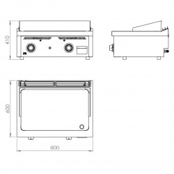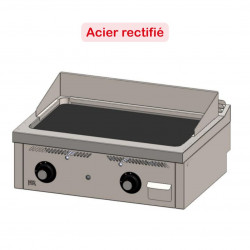 Fry-Top à gaz à poser - Puissance : 18 kW – Plancha en acier métallique d’épaisseur 15 mm - Boitier en acier inoxydable avec tiroir collecteur de graisse situé à l’avant – Thermocouple de sécurité - Pieds réglables – Plaque de cuisson soudée au sommet – Chaque bruleur à un allumage automatique
