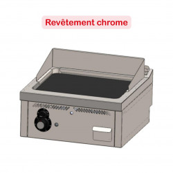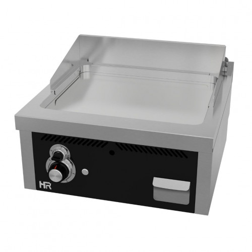 Fry-Top à gaz à poser - Puissance : 12 kW – Plancha en acier métallique d’épaisseur 15 mm - Boitier en acier inoxydable avec tiroir collecteur de graisse situé à l’avant – Thermocouple de sécurité - Pieds réglables – Plaque de cuisson soudée au sommet – Chaque bruleur à un allumage automatique – Vanne thermostatique