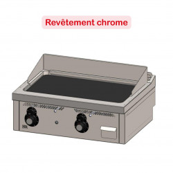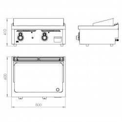 Fry-Top à gaz à poser - Puissance : 18 kW – Plancha en acier métallique d’épaisseur 15 mm - Boitier en acier inoxydable avec tiroir collecteur de graisse situé à l’avant – Thermocouple de sécurité - Pieds réglables – Plaque de cuisson soudée au sommet – Chaque bruleur à un allumage automatique – Vanne thermostatique