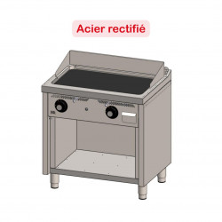 Fry-Top à gaz sur meuble - Puissance : 18 kW – Plancha en acier métallique d’épaisseur 15 mm - Boitier en acier inoxydable avec tiroir collecteur de graisse situé à l’avant – Thermocouple de sécurité - Pieds réglables – Plaque de cuisson soudée au sommet – Chaque bruleur à un allumage automatique