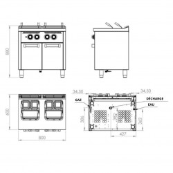 Cuiseur à pâtes gaz - 2 cuves - Capacité 25L (x2) -Cuve en acier inoxydable AISI 316 - Valve de remplissage inclus - Vanne de drainage inclus pour le nettoyage du réservoir - Drainage connectable - Température 0°C - 99°C - Thermocouple de sécurité - Allumage automatique avec flamme pilote - Pieds ajustables - Paniers inclus ( 1 panier 1/2 et 2 paniers 1/4)