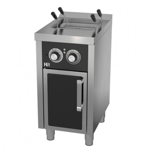 Cuiseur à pâtes électrique - 1 cuve - Capacité 25L -Cuve en acier inoxydable AISI 316 - Valve de remplissage inclus - Vanne de drainage inclus pour le nettoyage du réservoir - Drainage connectable - Température 0°C - 99°C - Thermostat de sécurité - Contrôle de puissance - Pieds ajustables - Paniers inclus ( 1 panier 1/2 et 2 paniers 1/4)