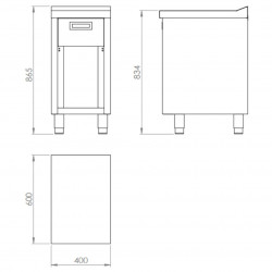 Meuble neutre – Avec 1 tiroir avec armoire – Construction en acier inox - Plan de travail renforcé en acier inoxydable – Pieds réglables