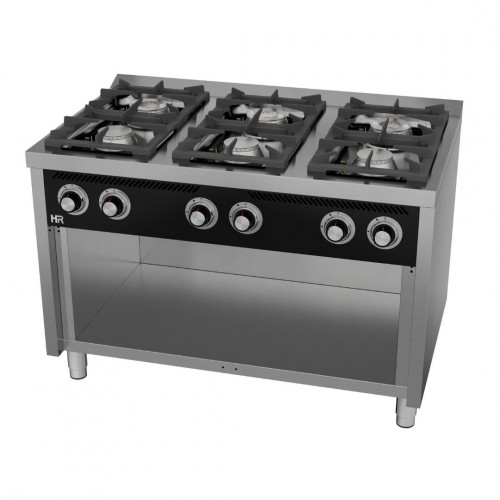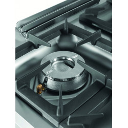 Fourneaux à gaz feu vif série 750 sur placard – 6 brûleurs – Puissance : 45,9 kW - Brûleurs supérieurs nickelés de haute efficacité thermique – Acier inoxydable – Grilles supérieures en acier chromé – Thermocouple de sécurité – Grille de cuisson en fonte - Tous les brûleurs intègrent veilleuse