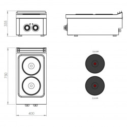 Fourneaux électrique basic – 2 plaques – Puissance : 5,2 kW – Plaques : 2,6 kW (x2) - Plaques électriques de haute efficacité thermique – Acier inoxydable AISI 316