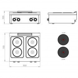 Fourneau électrique 4 plaques s/750 á poser
