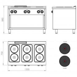 0 Fourneau électrique 6 plaques s/750 sur placard