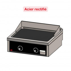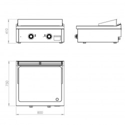 Fry-Top électrique à poser - Puissance : 24 kW – Plancha en acier métallique d’épaisseur 15 mm - Boitier en acier inoxydable avec tiroir collecteur de graisse situé à l’avant – Thermocouple de sécurité - Pieds réglables – Plaque de cuisson soudée au sommet – Chaque bruleur à un allumage automatique