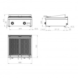 Barbecue à poser à gaz – Puissance 26,28 kW – Tiroir collecteur de graisse amovible sur le devant – Boitier en acier inoxydable – Lignes droites pour nettoyage facile – Grill avec profil en « V » - Thermocouple de sécurité – Pieds réglable – Grill réglable en hauteur, amovible – Tiroir en acier inoxydable pour ramasser cendres et graisses - Comprend les roches volcaniques – Grille intérieures en acier inoxydable