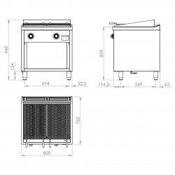 Barbecue à gaz sur meuble– Puissance 26,28 kW – Tiroir collecteur de graisse amovible sur le devant – Boitier en acier inoxydable – Lignes droites pour nettoyage facile – Grill avec profil en « V » - Thermocouple de sécurité – Pieds réglable – Grill réglable en hauteur, amovible – Tiroir en acier inoxydable pour ramasser cendres et graisses - Comprend les roches volcaniques – Grille intérieures en acier inoxydable