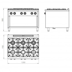 0 Fourneau 6 feux vifs Série 900 sur placard