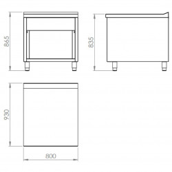 Plan neutre avec tiroir à poser série 900 - Acier inox AISI 304 - Pieds inox réglables en hauteur - Plan de travail renforcé épaisseur 15/10