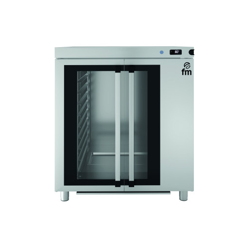 Etuve - Capacité : 20 x (600x400) / 10 x (600x800) - Extérieur et intérieur inox - Température maximum 85°C - Porte en verre trempé - Supports pour plateaux amovibles pour faciliter le nettoyage - Possibilité de choisir chaleur sèche ou humide - Distance entre les niveaux : 80mm - Plaques non fournie - Puissance : 1400 w