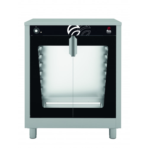 Etuve - Capacité : 8 x (600x400) - Extérieur et intérieur inox - Température maximum 85°C - Porte en verre trempé - Supports pour plateaux amovibles pour faciliter le nettoyage - Possibilité de choisir chaleur sèche ou humide - Distance entre les niveaux : 80mm - Plaques non fournie - Puissance : 1400 w