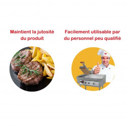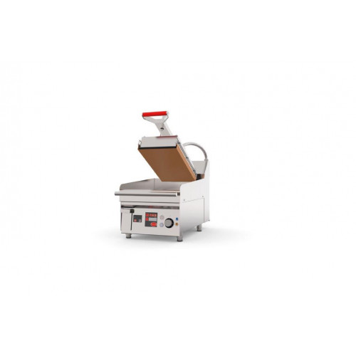 Plaque au chrome électrique avec presse - Surface utile de la plaque : 400x500 + 1 presse 250x450 - Puissance : 8 kW - Carrosserie inox AISI-304 - Plaque avec bain de chrome dur de 50 microns et épaisseur 18 mm - 2 programmes pour la presse - Commandes mécaniques pour la plaque - Commandes électroniques pour la/les presse(s) - Relevage automatique selon le programme - Réduction du temps de cuisson de 50% - Surface anti-adhérentes - Facile à utiliser et à nettoyer - 1 tiroir à graisse avec une capacité de 2 litres - LIVRÉ AVEC TISSUS ANTI-ADHERENT TEFLON, PRODUIT DE NETTOYAGE POUR TEFLON, RACLETTE, BROSSE METALLIQUE ET SPATULE