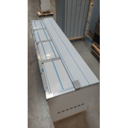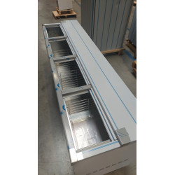 Refroidisseur à bouteilles et cannettes - Série fond ESCALIERS - Température +2°+8°C - 4 portes coulissantes inox - Capacité : 580l - 3 séparations intérieures - Extérieur tôle plastifiée blanche (sauf arrière en galva) - Intérieur en galva - Dessus en inox AISI-304 - Pour un stockage économique des bouteilles et cannettes avec un froid maximum - Interrupteur M/A et thermostat électromécanique - Compresseur hermétique ventilé - Evaporateur statique