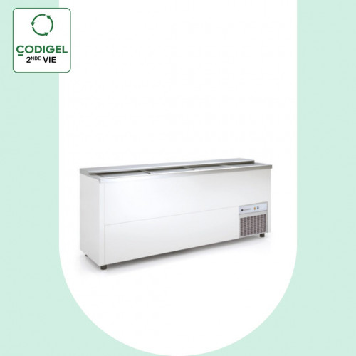 Refroidisseur à bouteilles et cannettes - Série fond ESCALIERS - Température +2°+8°C - 4 portes coulissantes inox - Capacité : 580l - 3 séparations intérieures - Extérieur tôle plastifiée blanche (sauf arrière en galva) - Intérieur en galva - Dessus en inox AISI-304 - Pour un stockage économique des bouteilles et cannettes avec un froid maximum - Interrupteur M/A et thermostat électromécanique - Compresseur hermétique ventilé - Evaporateur statique