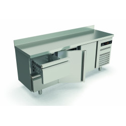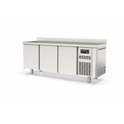 Meuble 600 positif - Série SNACK S-Line - Température -2°/+8°C - 3 portes pleines - Capacité 380L - Extérieur et intérieur en inox AISI-304 (sauf partie arrière en galva) - Dosseret de 100 mm - Porte réversible avec rappel de porte, reste ouverte au delà de 90° - Evaporation automatique des eaux de dégivrage - Thermostat électronique avec afficheur digital, spécial économie d'énergie - Joint de portes magnétiques démontables plastifiés - Evaporateur ventilé traité anti-corrosion - Groupe extractible sur glissière - Livré avec 1 clayette rilsan par porte, réglable en hauteur sur support plastique - Pieds inox réglables de 125 à 200 mm - Ambiance 40°C