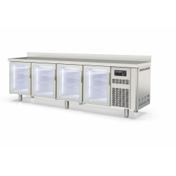 Meuble 600 positif - Série SNACK S-Line - Température -20°/-15°C - 4 portes pleines - Capacité 515L - Extérieur et intérieur en inox AISI-304 (sauf partie arrière en galva) - Dosseret de 100 mm - Porte réversible avec rappel de porte, reste ouverte au delà de 90° - Evaporation automatique des eaux de dégivrage - Thermostat électronique avec afficheur digital, spécial économie d'énergie - Joint de portes magnétiques démontables plastifiés - Evaporateur ventilé traité anti-corrosion - Groupe extractible sur glissière - Livré avec 1 clayette rilsan par porte, réglable en hauteur sur support plastique - Pieds inox réglables de 125 à 200 mm - Ambiance 32°C
