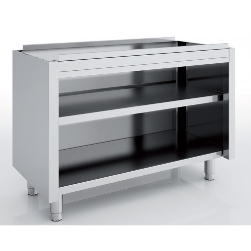 Meuble neutre ouvert série 600 - Meuble sans dessus - Inox AISI-304 18/10 satiné - Dimensions : 1000 x 600 x 850 mm - Sans portes - Etagère intérieure renforcée par omega- Meuble Etagère intérieure réglable en hauteur sur supports très résistants - Pieds robustes et réglables en hauteur