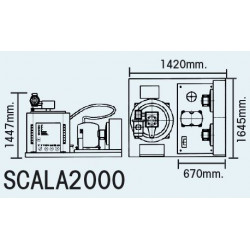 Machine à écailles - Gamme SCALA - Production (24H): +/- 2000kg - Refroidissement AIR - Glace à écailles (1,5 - 2,2mm) - Ensemble monobloc avec générateur de glace + groupe frigorifique complet monté sur châssis + équipement électrique - Sans carrosserie - Compresseur : 4+4 cv - Vidange : 25 mm - A adapter sur bac de stockage ou directement sur chambre froide