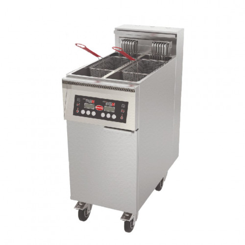 Friteuse électrique haut rendement - Série 800 XMART - Thermostat électronique - 3 programmes de temps configurables avec avertisseur sonore - 1 cuve double - 2x11 L - 22kW - Dim : 400x800x1015mm - Avec filtration