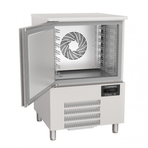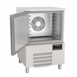 Cellule de refroidissement et congélation - Dimensions : 800X800X1240mm - Capacité 7 niveaux GN1/1-40 - Capacité 7 niveaux 60x40 - Capacité en L: 118 - Cycle avec sonde: oui - Cycle par temps: oui - Extérieur en acier inoxydable AISI-304, à l’exception de l’arrière et du fond. - Intérieur en acier inoxydable AISI-304 - 230/1/50 - Portes avec système de fermeture automatique et joint magnétique (reste ouvert au-delà de 90° d’ouverture). - Plan de travail en acier inoxydable AISI-304 - Groupe de condensation ventilé - Froid ventilé, avec revêtement époxy anticorrosion - Détendeur thermostatique - Isolation en polyuréthane injecté, densité 40 Kg/m³