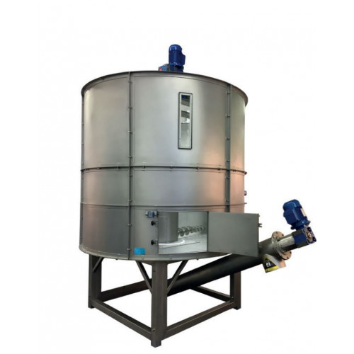 Silo orbital - Gamme industrielle - Capacité 25 tonnes - Volume (m3) : 50 - Diamètre : 4080 mm - Hauteur base : 1100 mm - Hauteur totale : 5100 mm - Flux d'extraction (kg/h) : 9000