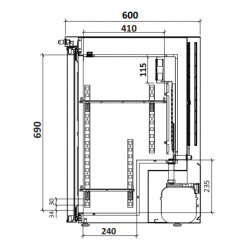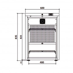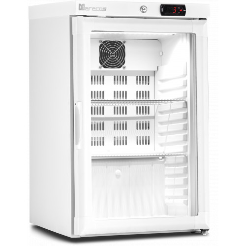 Mini armoire porte vitrée - température positive (+1/+8°C) - Volume : 52L - Intérieur plastique thermoformé et extérieur blanc (Skinplate) - Porte réversible - Thermostat Digital - Porte à fermeture automatique - Isolation en polyuréthane à base d’eau 60mm - Froid statique - Dégivrage manuel - Serrure incluse - 4 pieds réglables - 230 V – 50 Hz - Eclairage LED
