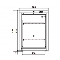 Mini armoire porte pleine - température positive (+1/+8°C) - Volume : 122L, - Intérieur inox AISI 304 et extérieur inox AISI 441 - Porte réversible - Thermostat Digital - Porte à fermeture automatique - Isolation en polyuréthane à base d’eau 60mm - Froid statique - Dégivrage manuel - Serrure incluse - 4 pieds réglables - 230 V – 50 Hz