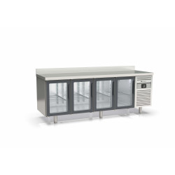 Meuble 700 négatif - Série GASTRO - Température -20°/-15°C - 3 portes vitrées (double vitrage + éclairage LED) - Extérieur et intérieur en inox AISI-304 18/10 (sauf partie arrière en galva) - Dosseret de 100mm (sans dosseret sur demande) - Thermostat électronique avec afficheur digital, spécial économie d'énergie - Evaporateur ventilé traité anti-corrosion - Groupe extractible sur glissière - Alarme haute et basse température - Evaporation automatique des eaux de dégivrage - Dégivrage par résistances - Porte emboutie et réversible - Charnières inox - Joint déclipsable - Pieds inox réglables (hauteur meuble possible 900) - Livré avec 1 clayette inox GN1/1 par porte + 1 jeu de glissières par porte - Ambiance 32°C