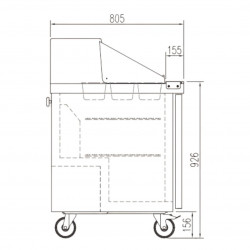 Meuble saladette - Série Haut rendement - Série Top + - Température -2°/+8°C - 3 portes pleines - Capacité 27 bacs GN1/6 - Capacité 600L - Extérieur et intérieur en inox (sauf partie arrière) - Dessus en inox 18/10 et table en polyéthylène blanc - Couvercle inox rabattable sur les bacs - Thermostat électronique avec afficheur digital, spécial économie d'énergie - Alarme haute et basse température sur contrôleur digital - Compresseur hermétique ventilé sur glissières - Evaporateur ventilé traité anti-corrosion - Evaporation automatique des eaux de dégivrage - Porte emboutie et réversible - Charnières inox - Joint déclispable - Roues de série (2 avec freins - 2 sans freins) - Livré avec 2 clayettes rilsan par porte réglables en hauteur - Ambiance 38°C