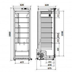 Armoire Série 430 - Négative - 1 porte - Extérieur Inox - Porte pleine - Dimensions intérieures 477x470x1590 mm - Capacité 268L - Puissance 320 w - Froid statique - Serrure - Dégivrage manuel - Gaz R290