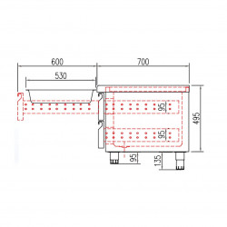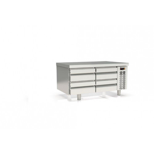 Meuble - Série soubassement GN1/1 Hauteur 600 - Température -2°/+8°C - 2x2 tiroirs GN1/1 prof. 100 + évaporateur entre les portes - Capacité 4 bacs GN1/1 - Extérieur et intérieur en inox AISI-304 18/10 (sauf partie arrière en galva) - Pieds inox réglables (90 à 125mm) - Tiroirs réfrigérés démontables en inox sur glissières télescopiques avec système d'auto-fermeture - Idéal pour poser de petits éléments de cuisson longueur 400mm, sous vide, trancheur... - Thermostat électronique avec afficheur digital, spécial économie d'énergie - Compresseur hermétique ventilé sur glissières - Evaporateur ventilé traité anti-corrosion - Evaporation automatique des eaux de dégivrage - Ambiance 32°C - Alarme haute et basse température sur contrôleur digital