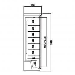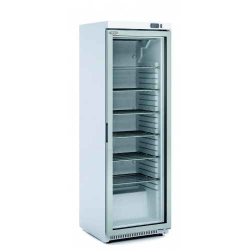 Armoire d'exposition - Température positive (0°/+7°C) - Capacité 348L - 1 porte vitrée (double vitrage) - Extérieur et intérieur en acier plastifié blanc - Contrôle digital de la température et du dégivrage - Evaporateur ventilé sur plaque froide aluminium - Evaporation automatique des eaux de dégivrage - Eclairage intérieur LED - Dotation : 6 clayettes plastifiées