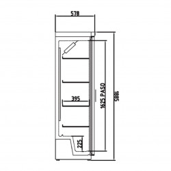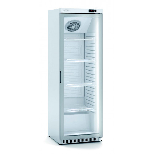 Armoire d'exposition - Température positive (0°/+7°C) - Capacité 348L - 1 porte vitrée (double vitrage) - Extérieur et intérieur en acier plastifié blanc - Contrôle digital de la température et du dégivrage - Evaporateur ventilé sur plaque froide aluminium - Evaporation automatique des eaux de dégivrage - Eclairage intérieur LED - Dotation : 4 clayettes plastifiées