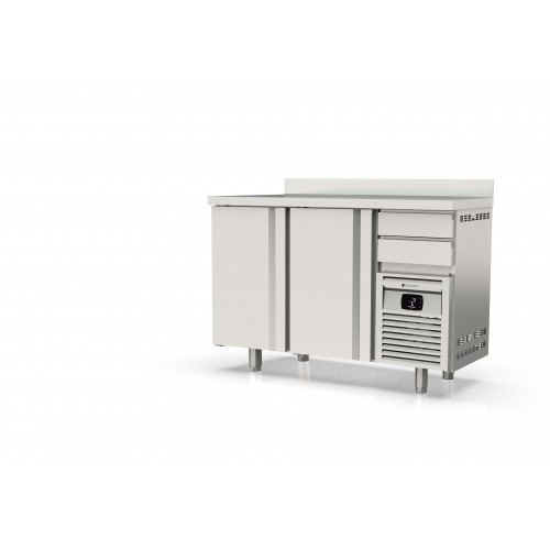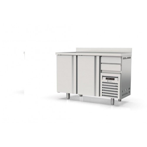 ARRIÈRE BAR - Température -2°/+8°C - 2 portes pleines + 2 tiroirs neutres sur groupe - Capacité 340L - Extérieur et intérieur en inox AISI-304 18/10 (sauf partie arrière en galva) - Dosseret de 100mm (sans dosseret sur demande) - Thermostat électronique avec afficheur digital, spécial économie d'énergie - Evaporation automatique des eaux de dégivrage - Porte emboutie et réversible - Charnières inox - Joint de porte déclipsable - Evaporateur ventilé traité anti-corrosion et condenseur ventilé et extractible - Pieds inox réglables (hauteur meuble possible 900) - Livré avec 2 clayettes rilsan par porte réglable en hauteur sur support inox - Ambiance 40°C - Alarme haute et basse température sur contrôleur digital