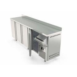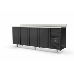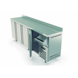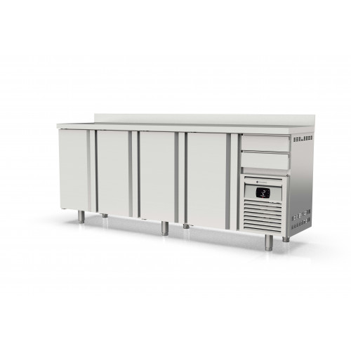 ARRIÈRE BAR - Température -2°/+8°C - 4 portes pleines + 2 tiroirs neutres sur groupe - Capacité 740L - Extérieur et intérieur en inox AISI-304 18/10 (sauf partie arrière en galva) - Dosseret de 100mm (sans dosseret sur demande) - Thermostat électronique avec afficheur digital, spécial économie d'énergie - Evaporation automatique des eaux de dégivrage - Porte emboutie et réversible - Charnières inox - Joint de porte déclipsable - Evaporateur ventilé traité anti-corrosion et condenseur ventilé et extractible - Pieds inox réglables (hauteur meuble possible 900) - Livré avec 2 clayettes rilsan par porte réglable en hauteur sur support inox - Ambiance 40°C - Alarme haute et basse température sur contrôleur digital